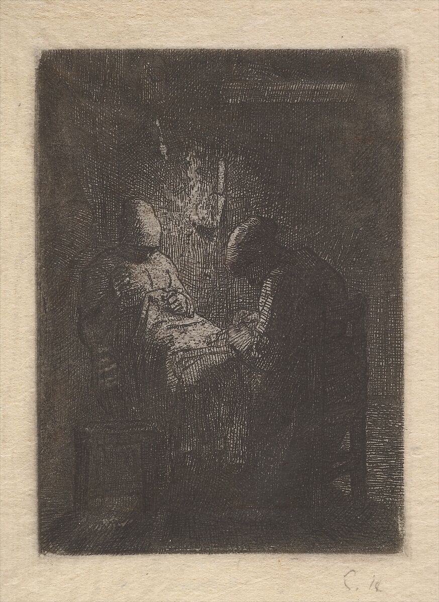 - Title: Two Women Sewing by Lamplight
