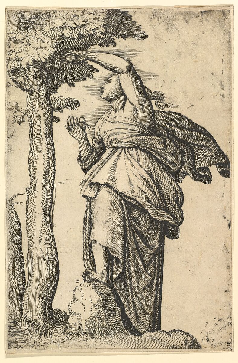 - Title: Woman in Roman Costume Picking Fruit from a Tree