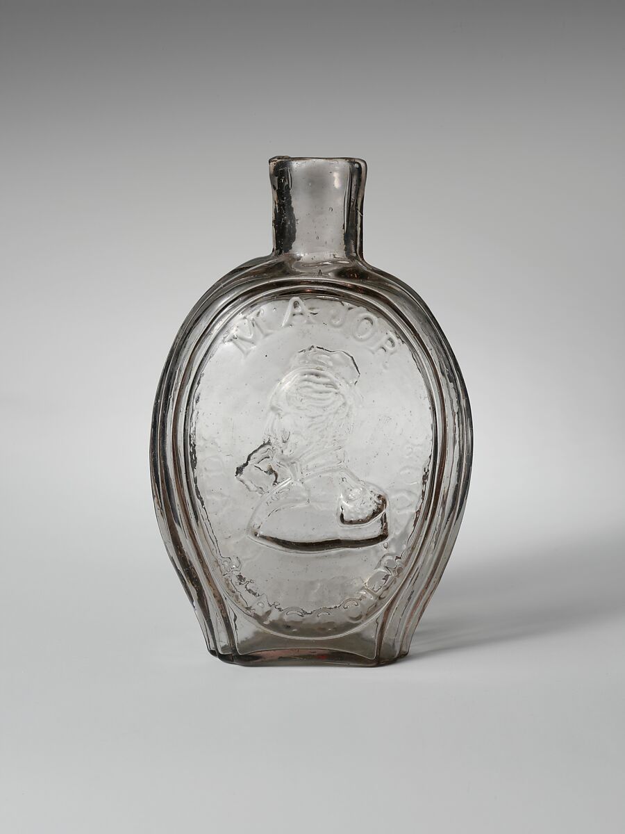 A small profile portrait of Zachary Taylor dressed in military uniform is molded on the obverse of this flask within an oval panel. On the reverse, in an oval panel, is a small profile portrait of Major Samuel Ringgold, also in uniform. This flask commemorates General Taylor's victory over the Mexican forces in the battle of Palo Alto, Texas, on May 8, 1846 as well as the death of Major Ringgold, the first American officer to be fatally wounded in the Mexican War.