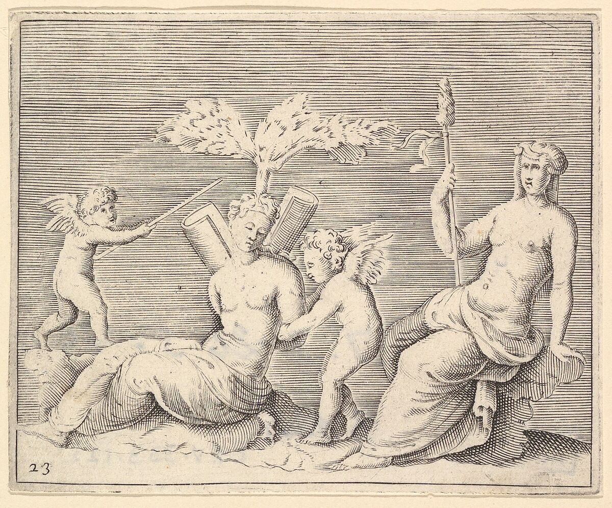 - Title: Two Women and Two Cupids, from "Ex Antiquis Cameorum et Gemmae Delineata/ Liber Secundus/et ab Enea Vico Parmen Incis"