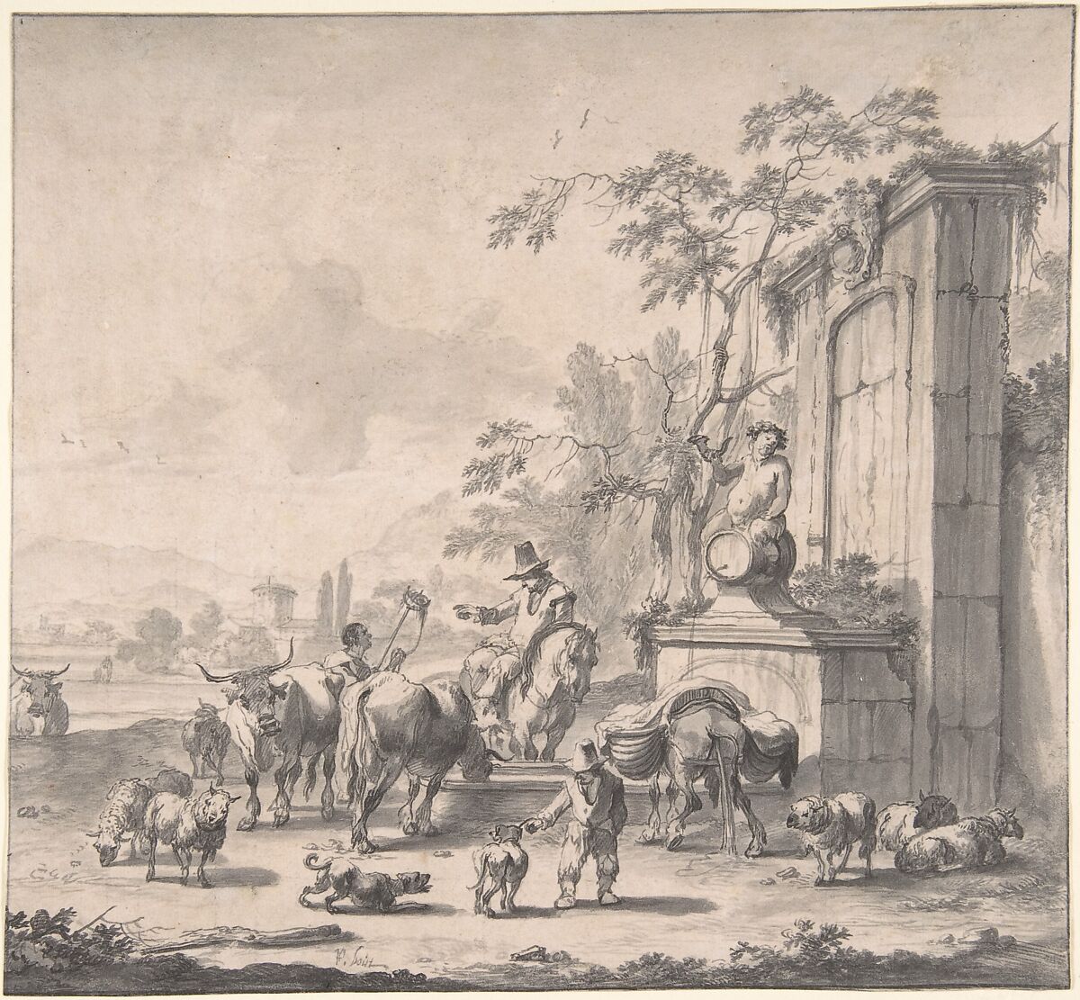 - Title: Landscape with Herdsmen, Sheep and Cows Around a Fountain