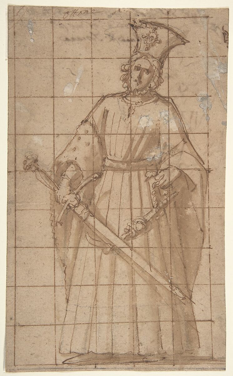 - Title: Standing Male Figure Holding a Sword (King Otto of Hungary; recto); Sketch of Standing Male Figure (verso)