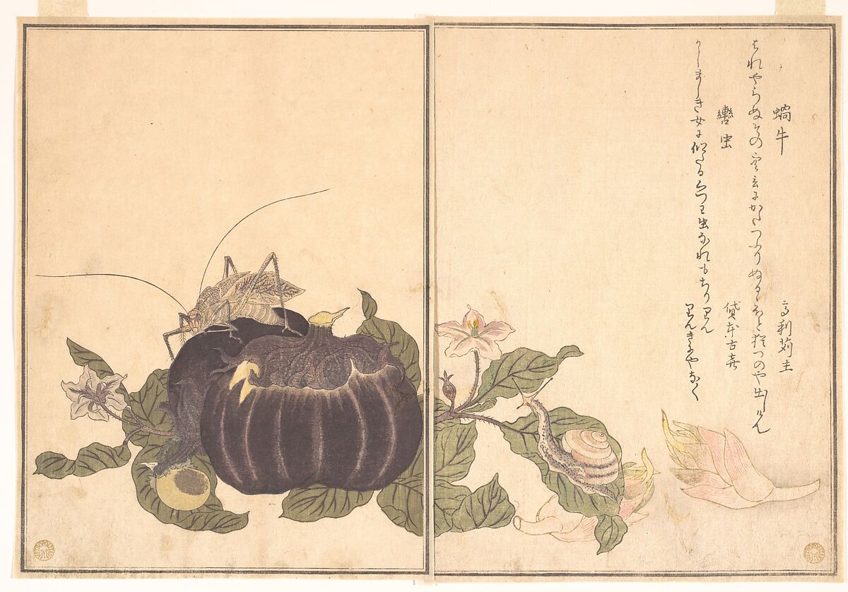 - Title: Land Snail (Katatsumuri); Giant Katydid (Kutsuwamushi), from the Picture Book of Crawling Creatures (Ehon mushi erami)