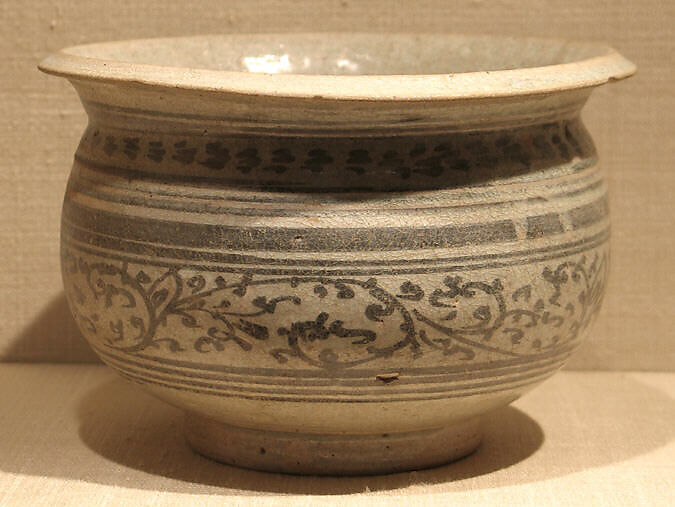 - Medium: Earthenware with cream white glaze and iron-brown underglaze decoration