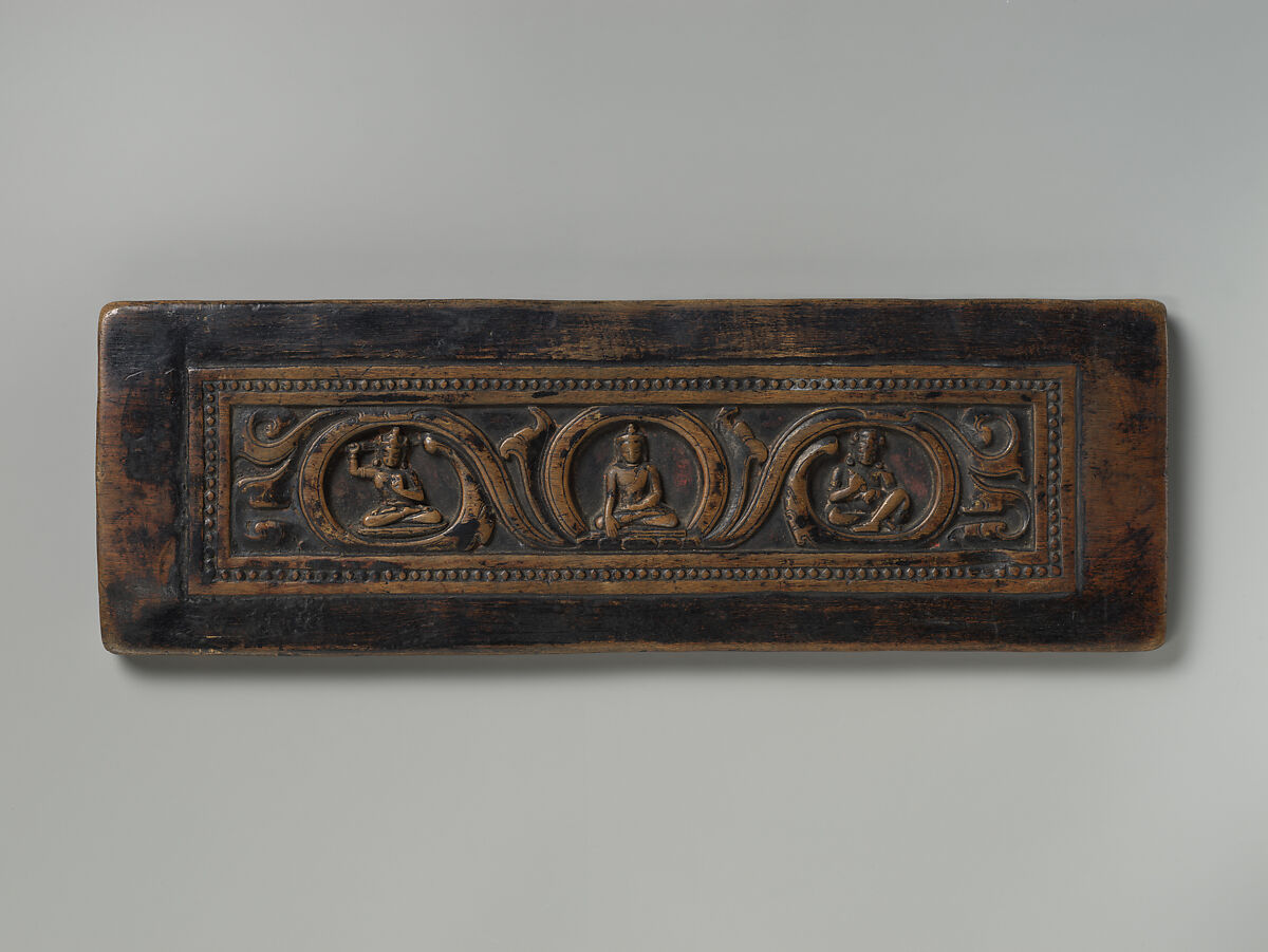 - Title: Manuscript Cover with the Buddha Shakyamuni, Attended by Manjushri and Vajrapani