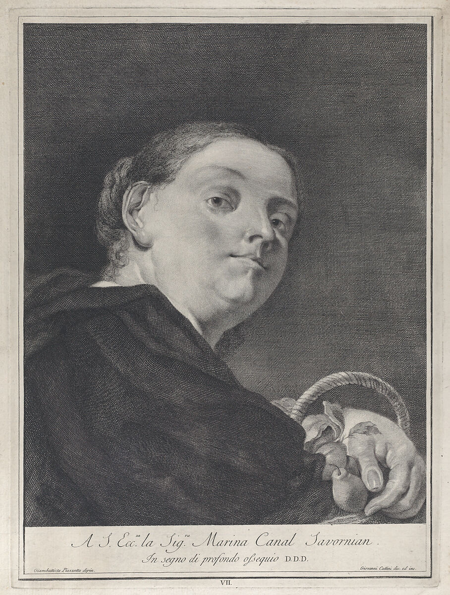 - Title: Plate 7: A woman with a basket of pears; from 'Icones ad vivum expressae' after Giovanni Battista Piazzetta