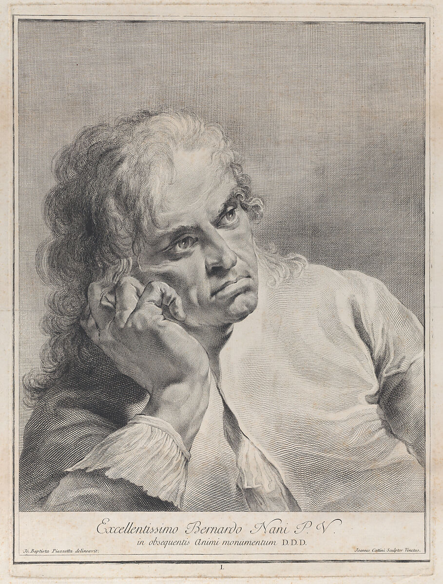 Cattini engraved a set of 15 plates (frontispiece plus 14 numbered plates) after Piazzetta, entitling them: Icones ad vivum expressae. Most copies of the set are dated 1754 on the title page. A fine early set in the Mariette album of Piazzetta engravings in the Biblioteque Nationale is dated 1743. Moschini and Palluchini refer to a title page of 1763. Teodoro Viero reissued a reduced set of 8 plates plus title page in 1767. Several prints in the set were also copied by Johann Lorenz Haid of Augsburg (1702 - 1750), 1743-1750 and by Franz Xavier Jungwirth of Munich (1720-1790) in 1753 (see: George Knox, Piazzetta, exh. cata., National Gallery, 1983, no. 25; Maria Wiel, L'eredità di Piazzetta, 1996, no.70, p.42).