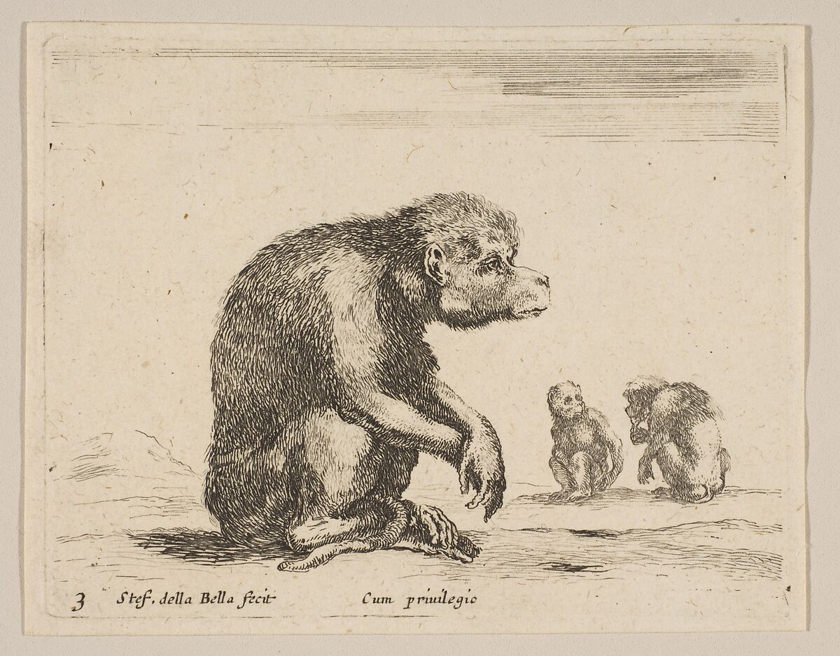 Plate 3: seated monkey, from "Various animals" (Diversi animali)