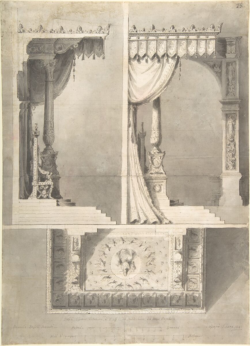 - Title: Design for a Papal Throne with Elevations and Sketch of Baldacchino Interior
