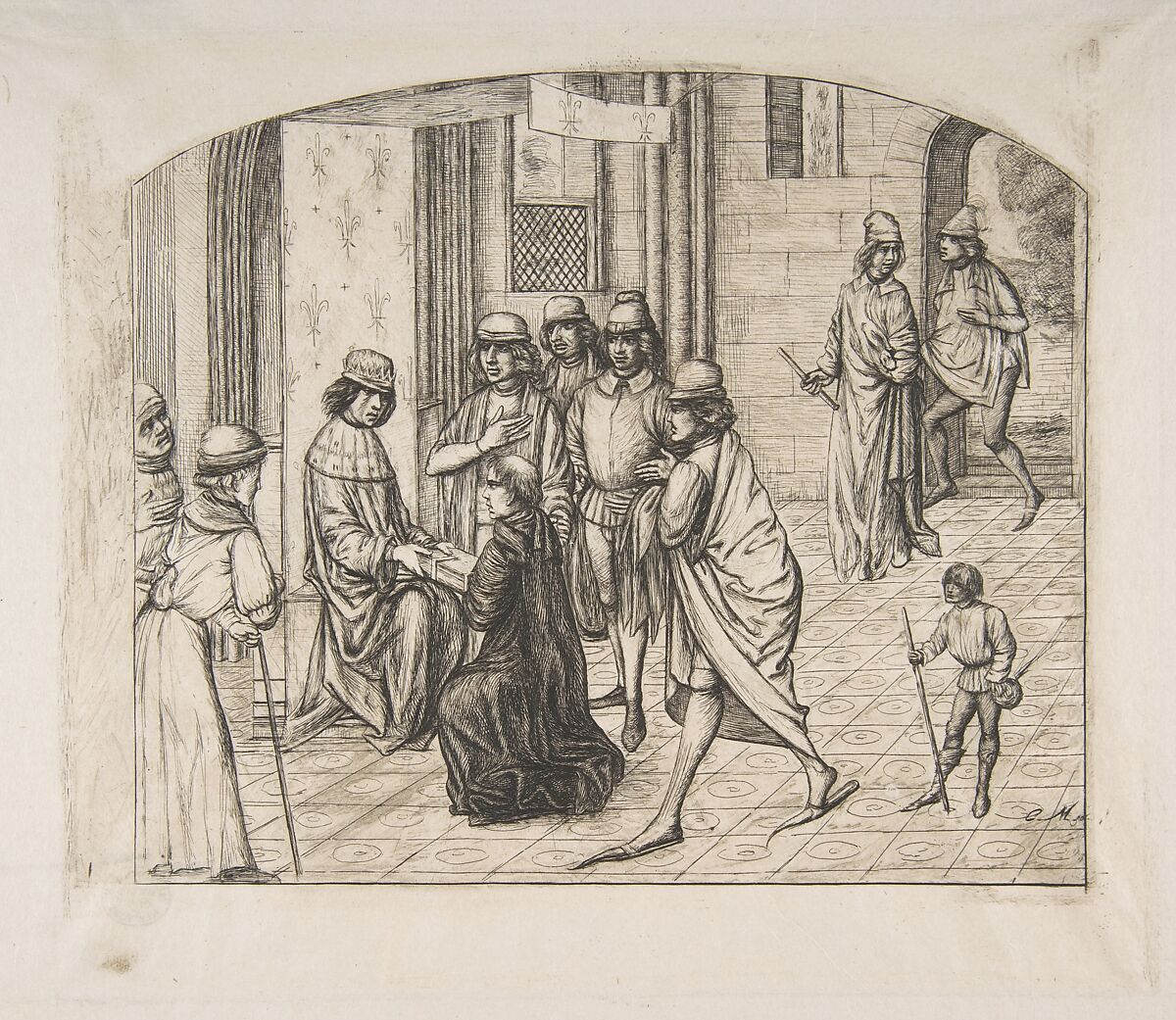 - Title: The printer Valère Maxime being presented to King Louis XI, after an earlier miniature