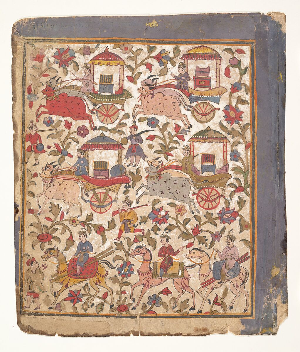 - Title: Procession of Carriages Carrying Booty: Page from a Dispersed Bhagavata Purana Manuscript