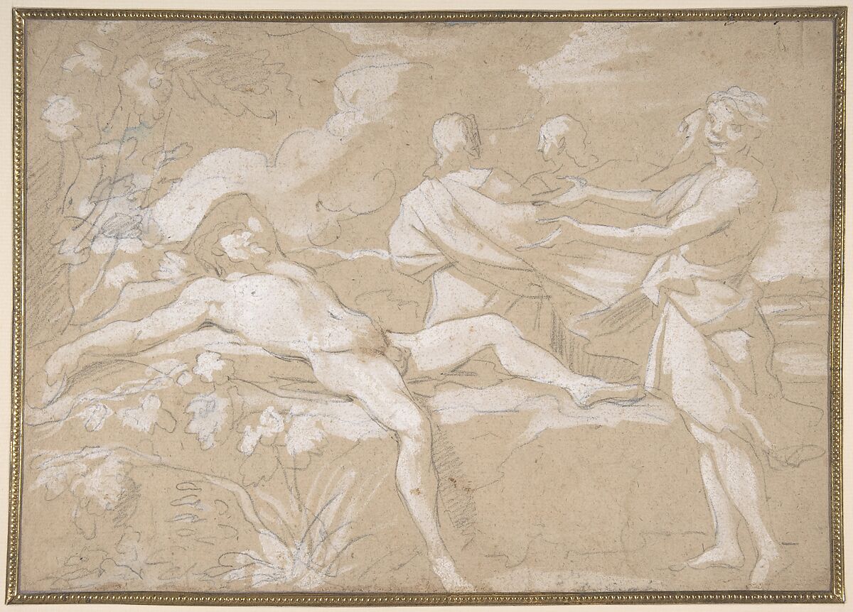 - Medium: Black chalk, heightened with white gouache