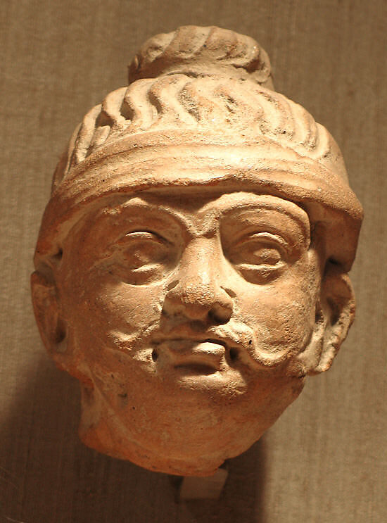 A major Buddhist monastery and stupa site was excavated at Akhnur (Akhnoor), near Jammu, revealing a series of both large- and small-scale terracotta reliefs decorating the monuments. These heads once formed part of those sculptural programs and likely depict Buddhist laity.