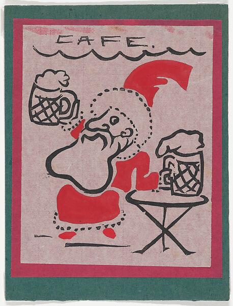One of two known impressions. Linocut (black) and pochoir (red)