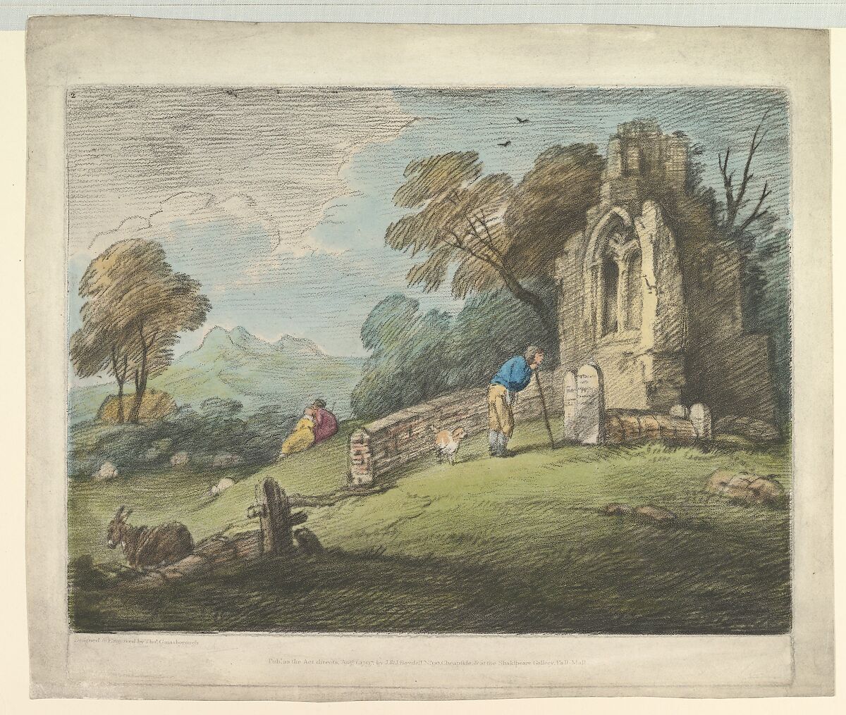 - Title: Wooded Landscape with Peasant Reading Tombstone, Rustic Lovers and Ruined Church