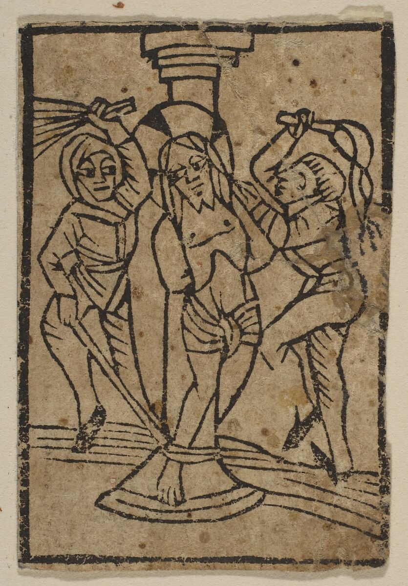 - Medium: Woodcut, cut from a larger sheet showing the passion