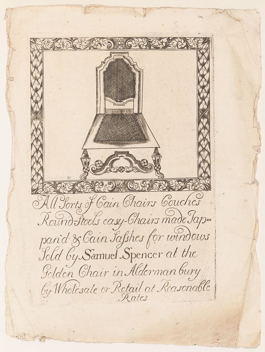 - Title: Trade Card of Samuel Spencer, Cain Chairs, at the Golden Chair in Aldermanbury