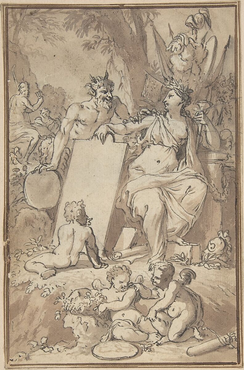 - Medium: Pen and black ink, brush and brown wash, over black chalk; framing lines in pen and brown ink