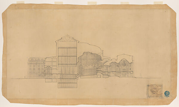This drawing is part of a group of drawings donated to the Museum by the National Institute for Architectural Education (now the Van Alen Institute). The institute was founded in 1894 as the Society of Beaux-Arts Architects by a group of alumni from the École des Beaux-Arts in Paris to promote and advance architectural practice in the United States of America. Alongside a series of courses, the Society initiated various competitions and awards, of which the so-called Paris Prize, first awarded in 1904, was the most prestigious. The winner of the annual competition was given the opportunity to study at the École in Paris for a year. With the exception of the war years, from 1915 to 1918 and 1941 to 1946, the prize was awarded annually up until 1995. The Met collection holdings contain 78 prize-winning designs for public buildings, monuments and urban planning by 24 architects from the period between 1907 and 1947.