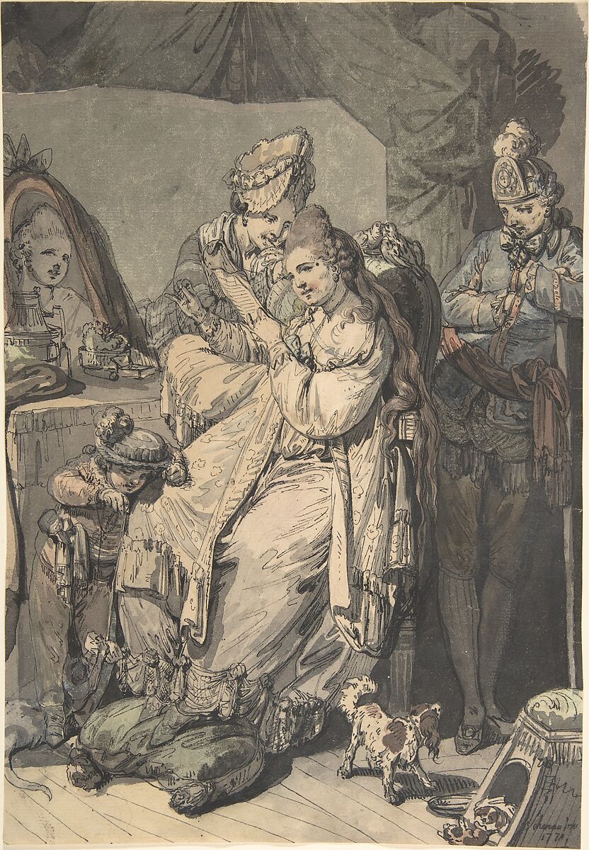 - Title: A Woman at her Toilet with a Maid, a Boy, a Dog and a Young Soldier; verso: A Sketch for a Similar Composition