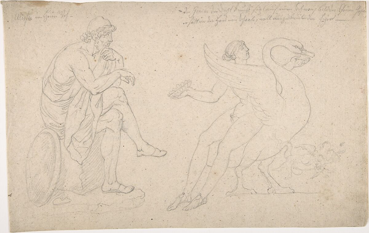 Ornament with Mythic Figures: Ulysses, a youth seated on a swan