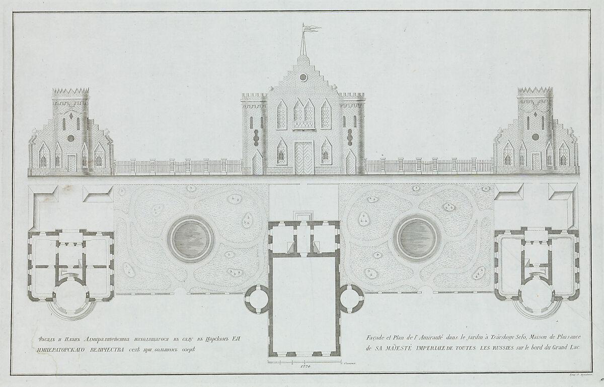 - Title: Façade et plan de l'Amirauté dans le jardin à Tsárskoye Selò...