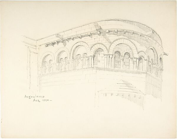 - Title: Angoulême Cathedral, Eastern Chapel (recto); Star-shaped geometrical diagram (verso)