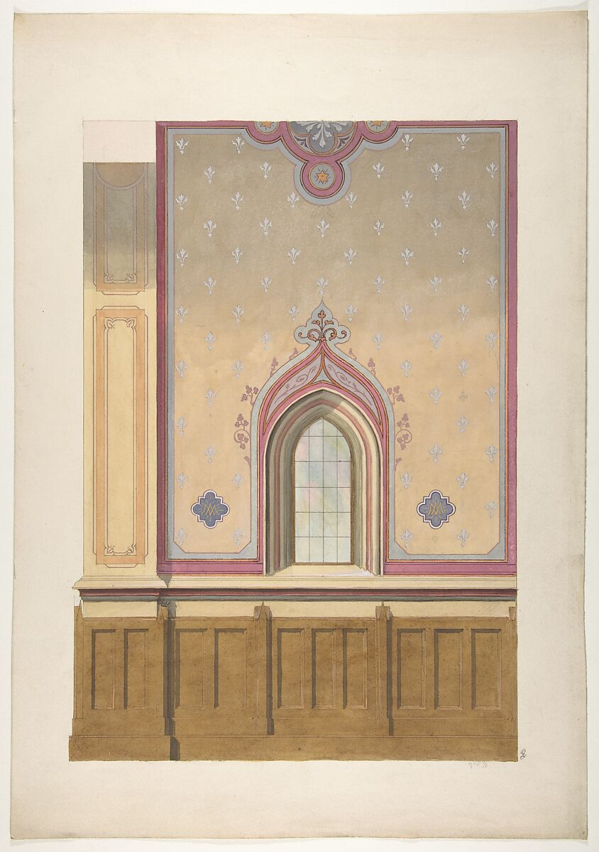 - Title:Design for the painted decoration of a wall pierced by an arched window
