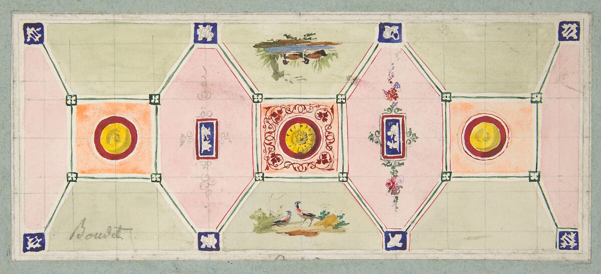 - Title:Design for the painted decoration of a baker's shop