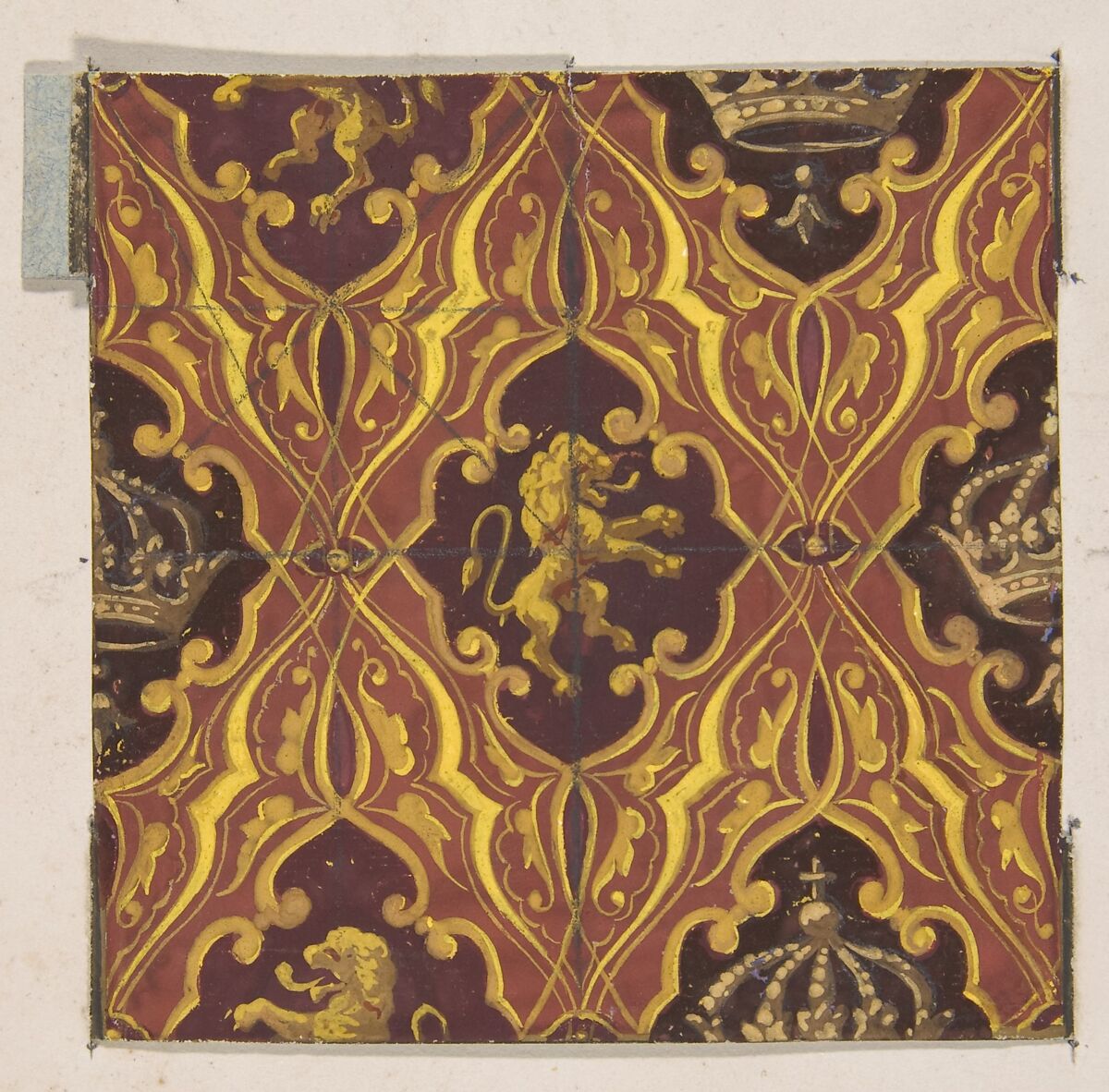 - Title:Design for wallpaper featuring rampant lions and crowns