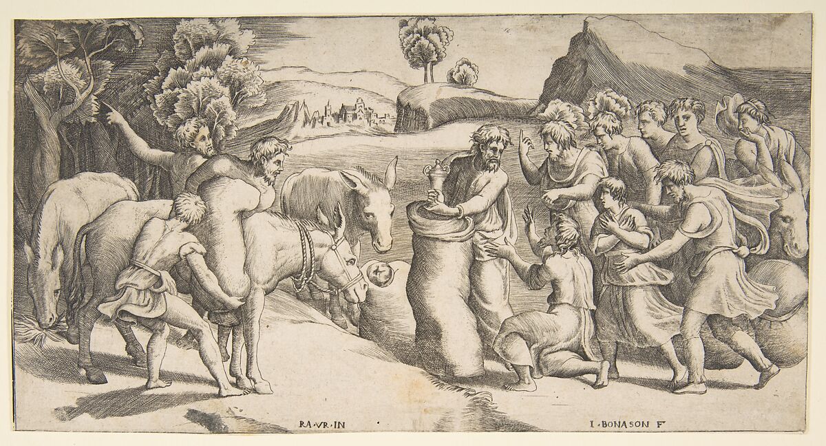 - Title: Joseph's cup being discovered in Benjamin's sack of grain