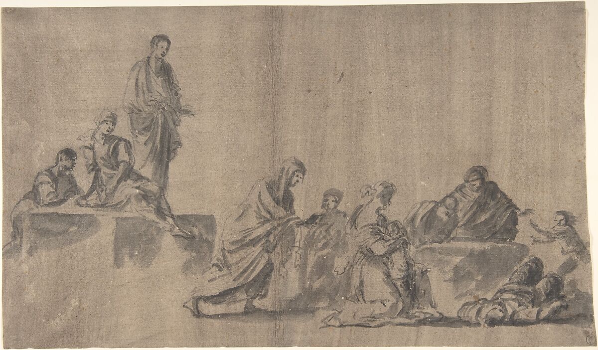 - Title: Figures Surrounding a Man Lying on the Ground; verso: A Group of Figures