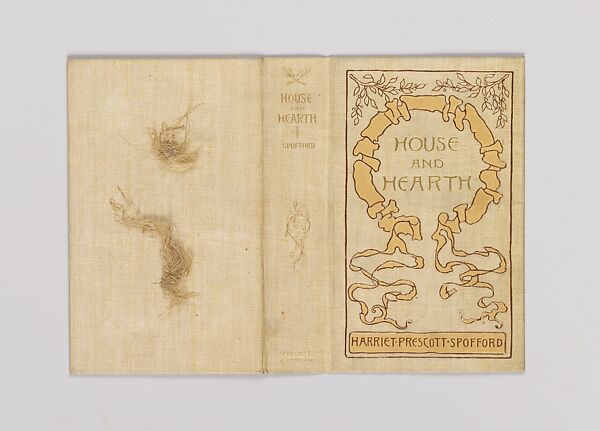 A leading New York late nineteenth century book-cover designer, Morse studied at the Woman’s Art School of the Cooper Union, then under John La Farge before working for Louis C. Tiffany as a painter and designer of stained glass. In 1887 she began to concentrate on book-covers, fufilling eighty-three commissions for New York commercial publishers by 1905. Complementing the text, she chose imagery ranging from classical, to Renaissance, Celtic, Arabic, Gothic, Rococo, Arts and Crafts and Art Nouveau. For this woman's guidebook on home-making and house-keeping, Morse created an Art Nouveau image centered on a laurel wreath that signifies the accomplishments to which women aspired in the late nineteenth century. The cover is bound in straw-colored, diagonal-rib reversed cloth and the front cover is stamped with a full-cover design in brown, peach, and gold. The Museum's cover is a publisher's production case.