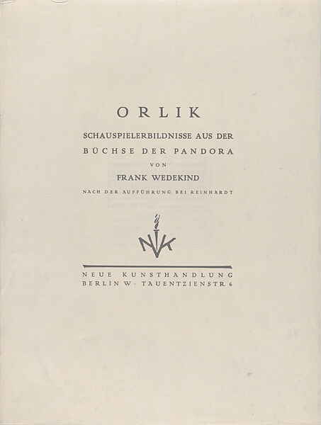 - Publisher: Published by Neue Kunsthandlung, Berlin