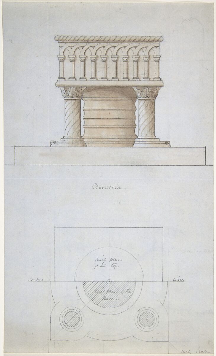 One Font and Plan (recto); Two Romanesque Style Fonts (verso)