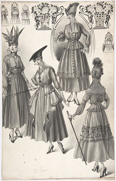- Title: Designs for Four Women's Dresses with Full Skirts