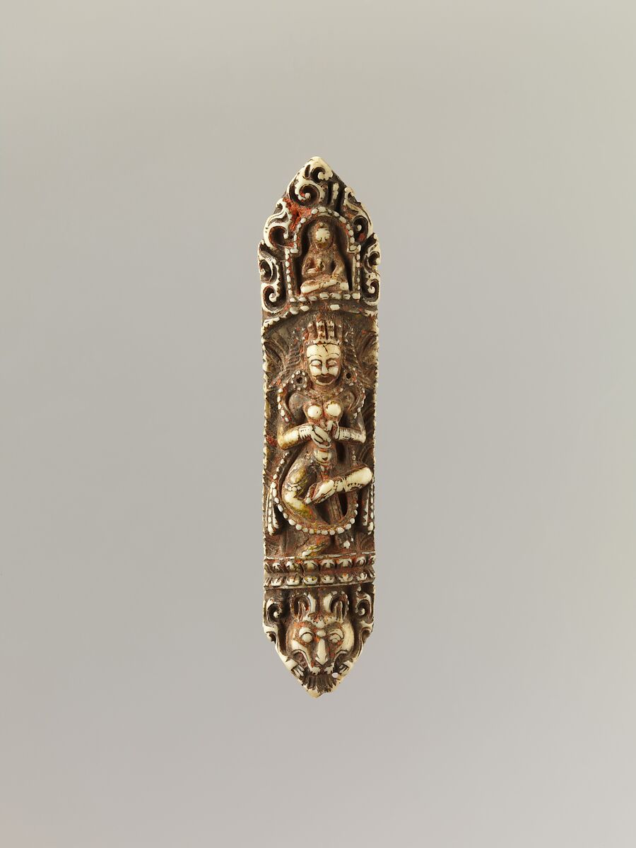 - Title: Plaque from a Tantric Ritual Apron (Chakrasamvara and Vajravarahi at Center)