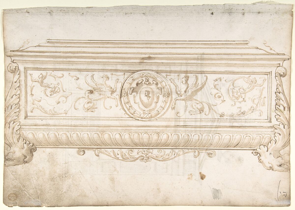 - Title: Design for a Cassone (recto); Design for a Tomb (verso)