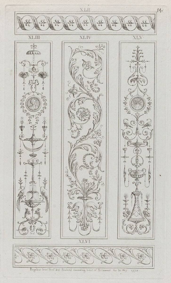 - Title: Panels of Ornament, nos. XLII-XLVI, plate 14 from "Designs for Various Ornaments"