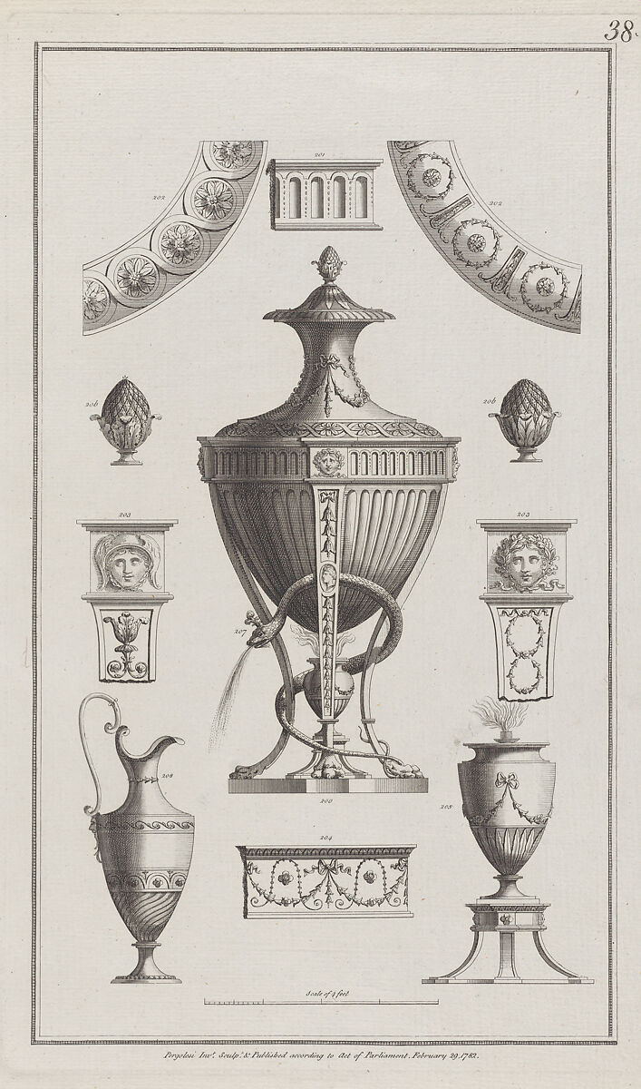 - Title: Vases and Ornament Designs, nos. 200-208, plate 38 from "Designs for Various Ornaments"