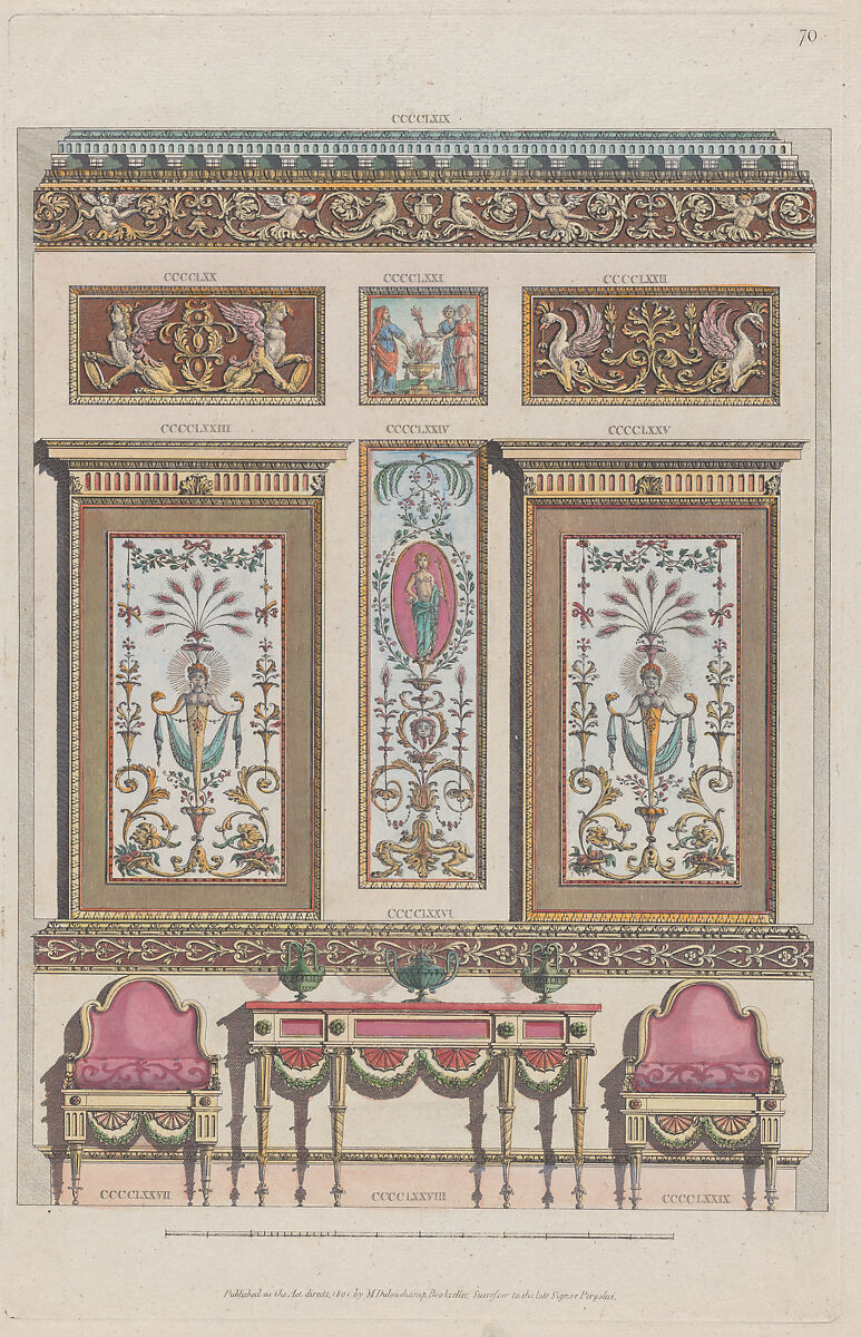 - Title: Interior Ornamented Wall, nos. CCCCLXIX–CCCCLXXIX, plate 70 from "Designs for Various Ornaments"
