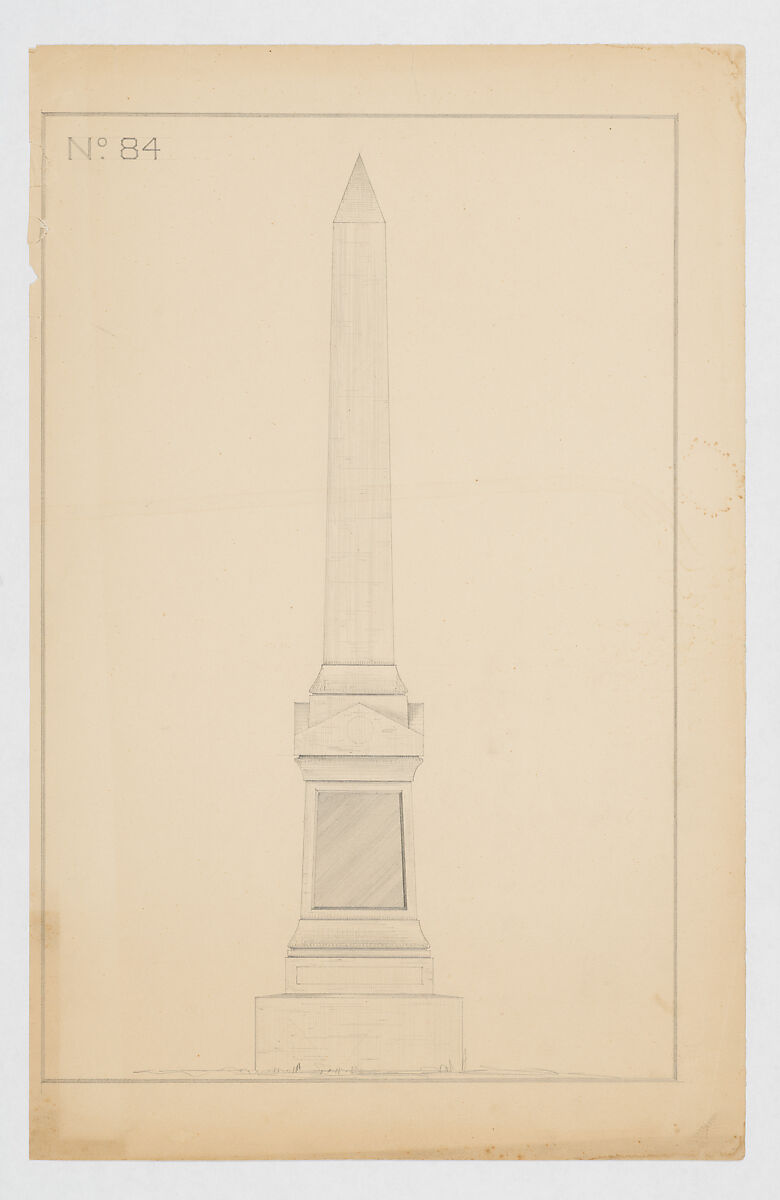 Alexander Maxwell designed and made grave monuments for New York area clients in the mid-nineteenth century (a fine example is a Butterfield family mausoleum of ca. 1875 at Woodlawn Cemetery in the Bronx). They likely were related to the marble and granite suppliers Alexander Maxwell & Co. of East Canaan, Connecticut, who provided marble for New York City Hall in 1838, and for a hundred columns used in an extension of the United States Capitol, Washington DC in 1860. This drawing comes from a group of designs for private memorials.