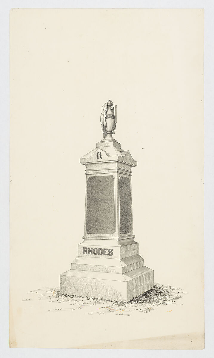Alexander Maxwell designed and made grave monuments for New York area clients in the mid-nineteenth century (a fine example is a Butterfield family mausoleum of ca. 1875 at Woodlawn Cemetery in the Bronx). They likely were related to the marble and granite suppliers Alexander Maxwell & Co. of East Canaan, Connecticut, who provided marble for New York City Hall in 1838, and for a hundred columns used in an extension of the United States Capitol, Washington DC in 1860. This drawing comes from a group of designs for private memorials.