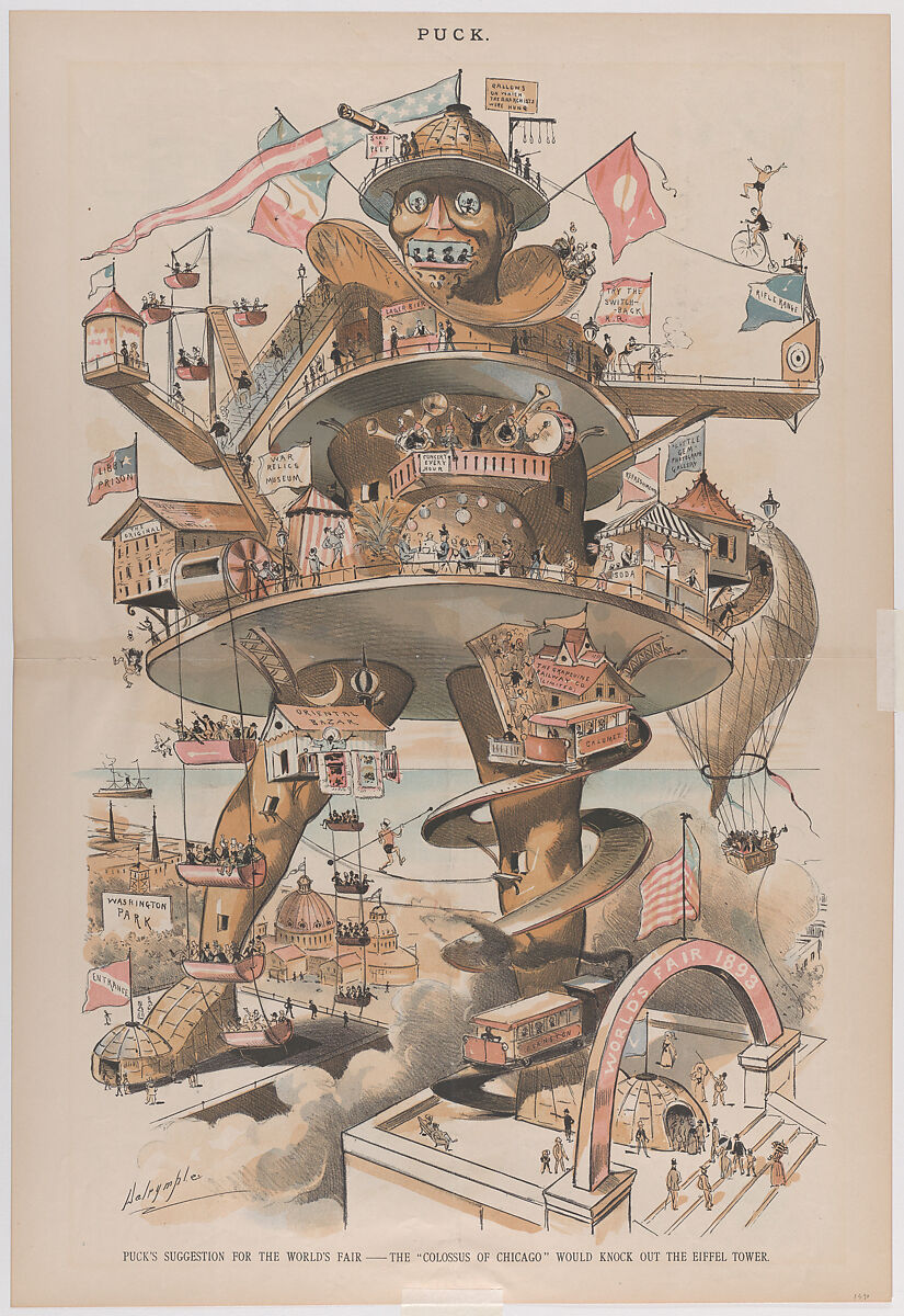- Title: Puck's Suggestion for the World's Fair, The Colossus of Chicago Would Knock Out the Eiffel Tower, from "Puck Magazine"