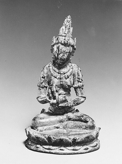 Small sculptures such as these (1987.142.5, .7-.9) are now identified as images from a larger set that were used to create a three-dimensional mandala. Two complete mandalas of this type have been discovered in Indonesia, one in the village of Chandi Reja in 1913 and another more recently at Surucolo. Both groups are thought to represent a Diamond World or Vajradhatu Mandala, thereby linking these images to the traditions of East Asia in which mandalas of this type are also preserved.