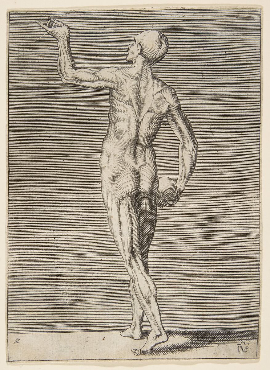 - Title:Man seen from the Back, holding a Skull in his right Hand