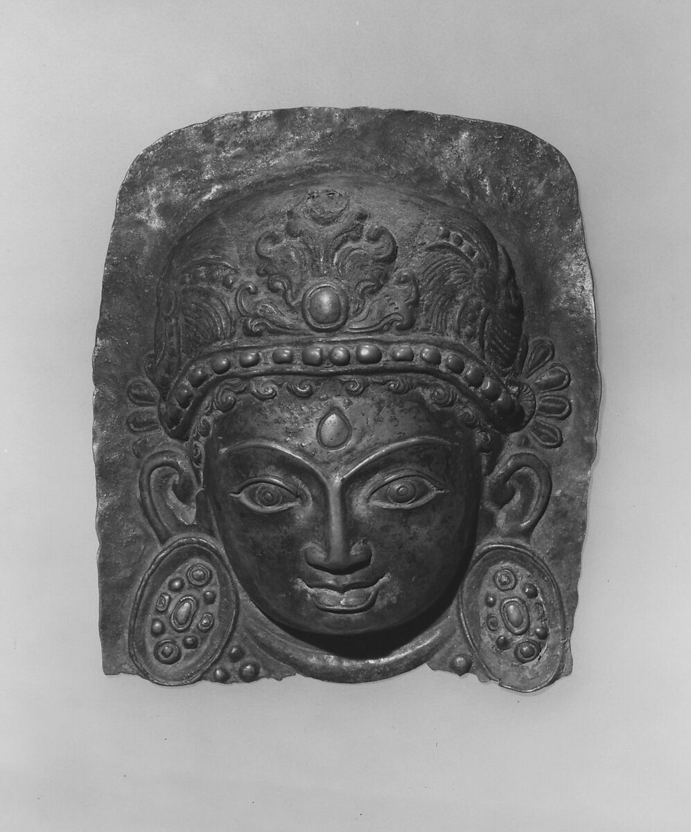 These masks were intended for processional use during Nepalese religious festivals. The lifelike metal face would have been affixed to a mannequin of a god, which was then dressed in textiles and swathed in garlands. The effigies were installed on palanquins and carried by devotees in festive processions. Similar religious displays are practiced by Hindu communities today in Himachal Pradesh in northern India, where such masks are known as mohra