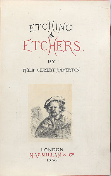One of the principal proponents of the nineteenth-century etching revival in England, Hamerton published this treatise on the medium that also featured the primary contemporary and historical practitioners. He took pride in offering his readers an impression from an original Rembrandt plate printed by the Parisian etching specialist Auguste Delâtre. The author explains having to choose an obscure plate for the purpose, as the best-known subjects had by then been worn down to the point that their lines retained little ink and they printed "ghosts."