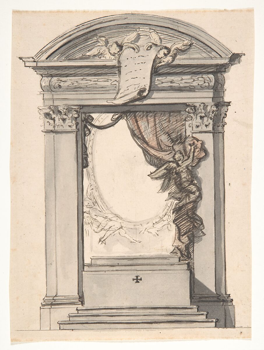 - Medium: Pen and black ink, gray and red wash, over black chalk or graphite