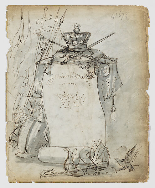 - Title: Vignette with Crown, Armor and Ecclesiastical Elements(recto); Knight in Armor (verso)